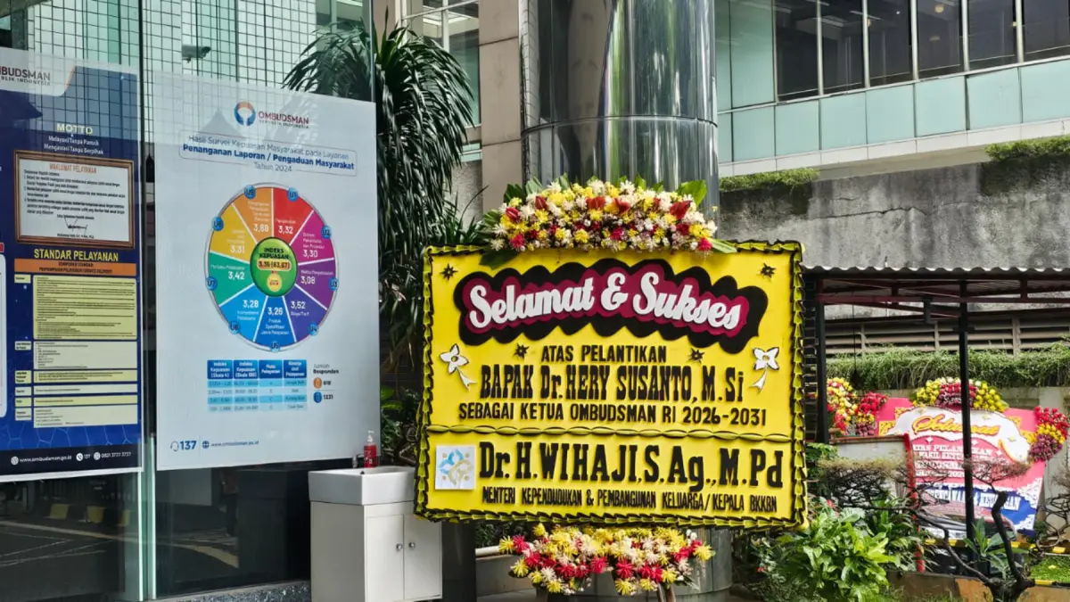Bahkan, terdapat ratusan karangan bunga selamat untuk pelantikan Hery Susanto masih terpajang di sekitar gedung Ombudsman RI.